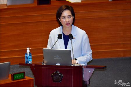 유은혜 사회부총리 겸 교육부 장관이 24일 국회 본회의 교육·사회·문화 대정부질문에서 의원 질의를 받고 있다.(사진=윤창원 기자)