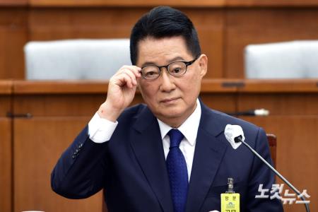 박지원 국가정보원장 후보자가 27일 국회에서 열린 인사청문회에서 안경을 만지고 있다.