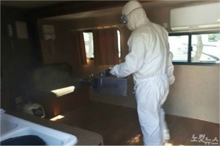 동해안 지역의 한 캠핑장을 방역소독 작업하고 있는 모습. (사진=유선희 기자/자료사진)