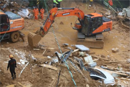 소방당국은 현재 A 씨와 B 씨의 아들(2), 40대 직원 등 3명도 펜션에 매몰된 것으로 추정하고 중장비를 동원해 구조 작업을 진행하고 있다. 펜션에 있던 다른 투숙객 등은 무사히 대피했다.