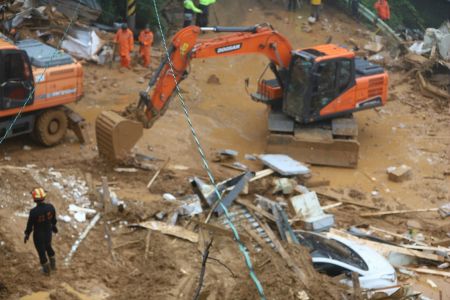 경찰과 소방당국은 인력 39명과 굴착기 등 장비 16대를 동원해 구조작업에 나섰지만, 유실된 도로를 복구하고 성인 무릎 높이까지 쌓인 토사를 헤치며 수습하느라 구조작업에 어려움을 겪었다.