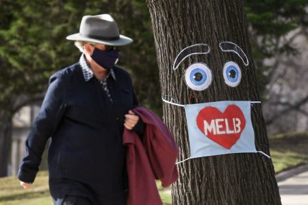 보호용 마스크를 착용한 호주 빅토리아주 멜버른 시민(사진=연합뉴스)
