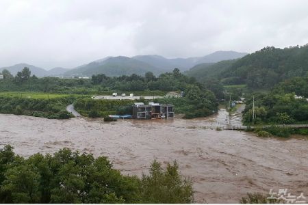 엿새간 700㎜에 이르는 물폭탄을 맞은 강원 철원군의 한탄천이 범람하면서 한순간에 흙탕물 수중 도시로 변했다.