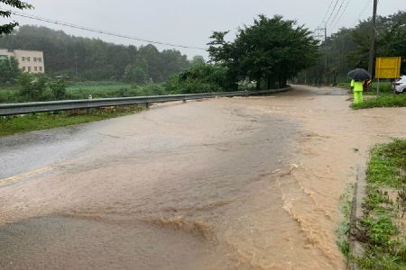 폭우로 성 건봉사 인근 도로가 침수됐다. (사진=고성군청 제공)