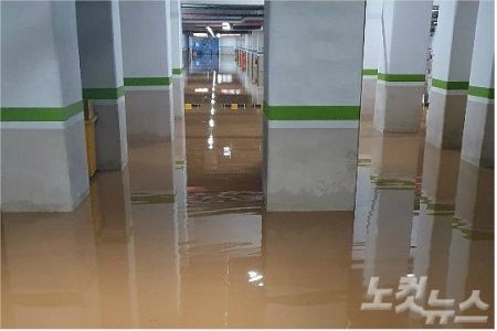 침수 피해를 입은 광주의 한 아파트 지하주차장(사진=이승훈 기자)