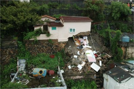 주택 붕괴는 1건으로, 이날 오전 9시쯤 동구 수정동 비탈면에 있는 한 주택 하단부가 무너져 내렸다.
