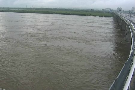 8일 오후 3시 20분 홍수주의보가 발령된 낙동강 구포대교(사진=낙동강홍수통제소 동영상 캡처)