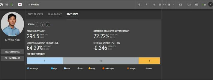 김시우는 미국프로골프(PGA)투어 PGA 챔피언십 3라운드에서 공동 13위에 올라 최종일 우승 경쟁에 뛰어들었다.(사진=PGA투어 공식 홈페이지 갈무리)
