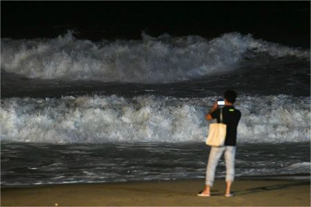태풍으로 높아진 파도를 촬영하고 있는 관광객(사진=자료사진)