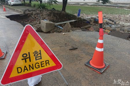 10일 구례5일장 일대 도로가 파손된 모습. (사진=유대용 기자)