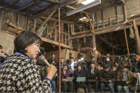 목포 근대역사문화공간 내 부동산 투기 의혹을 받는 무소속 손혜원 의원이 지난 1월 23일 오후 목포 현장에서 해명 기자회견을 하고 있다. (사진=연합뉴스)