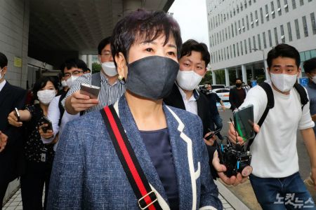 '목포투기 의혹‘ 으로 재판에 넘겨진 손혜원 전 의원이 12일 오후 서울 양천구 남부지법에서 열린 1심 선고공판 출석 후 법원을 나서고 있다. 손 전 의원은 징역 1년 6개월의 실형을 선고받았다.(사진=황진환 기자)