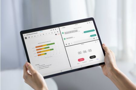 S펜으로 기울어지게 작성된 필기도 자동으로 수평을 맞춰주며, 동일한 삼성 계정으로 등록된 스마트폰과 PC에도 자동 저장 및 동기화를 지원해 여러 기기에서 그대로 작업을 이어서 할 수 있다.