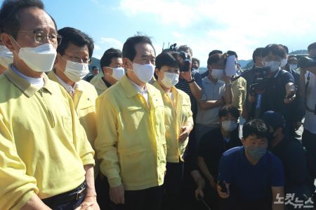 이어 정 총리는 자리를 옮겨 댐 방류로 침수 피해를 입은 진안군 주천면의 한 인삼밭을 찾아 농민들을 위로했다.