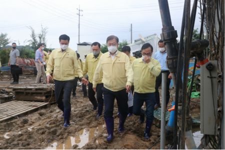 전당대회 중인 민주당 차기 당대표 후보들은 연설문을 드는 대신 장화를 신고 수해복구 현장으로 향했다. 의원들이 동행했고, 강원 지역에 250명이 동원됐다. 지난 13일 당 지지도가 역전당했다는 여론조사가 나오면서 다소 무거운 분위기였다.