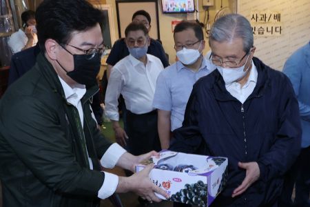이튿날 미래통합당 김종인 비상대책위원장은 서울 송파구 가락시장으로 향했다. 수해에 이어 물가 이슈에도 현장 점검으로 발빠르게 대응했다.