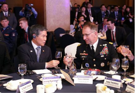 건배하는 정경두 장관과 에이브럼스 주한미군사령관(사진=연합뉴스)
