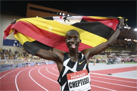 조슈아 체프테게이(우간다)는 15일(한국시간) 모나코에서 열린 세계육상연맹 다이아몬드리그 남자 5000m에서 12분35초36 세계신기록을 작성했다. 종전 기록은 케네시아 베켈레(에티오피아)가 2004년 6월 기록한 12분37초35다.