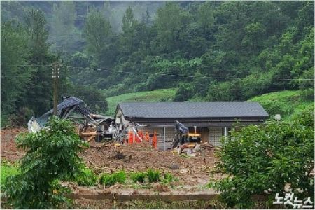 지난 7일 밤 전남 곡성에서 발생한 산사태로 마을 주민 5명이 숨졌다.(사진=김한영 기자)
