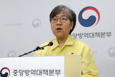 정은경 중앙방역대책본부장(질병관리본부장)이 17일 오후 충북 청주시 질병관리본부에서 코로나19 국내 발생 현황 및 확진 환자 중간조사 결과 등 정례브리핑을 하고 있다.(사진=연합뉴스)