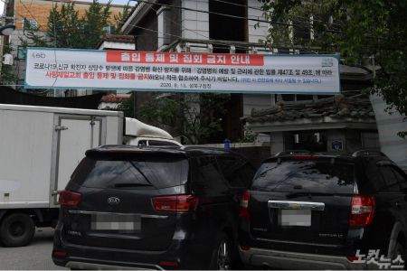 지난 17일 오전 서울 성북구 사랑제일교회 인근에 출입 통제 현수막이 걸려 있다.(사진=박종민 기자)