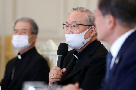염수정 추기경(서울대교구장)이 20일 청와대에서 열린 문재인 대통령과의 오찬간담회에서 발언하고 있다. (사진=연합뉴스)