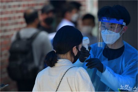 20일 서울 종로구 선별진료소에서 의료진이 시민의 체온을 측정하고 있다. (사진=박종민 기자/자료사진)