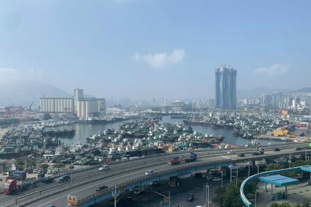 제8호 태풍 '바비(BAVI)'가 북상 중인 25일 오후 부산 동구 부산항 5부두에 선박들이 태풍을 피해 줄지어 정박해있다.(사진=남해해경청 제공)