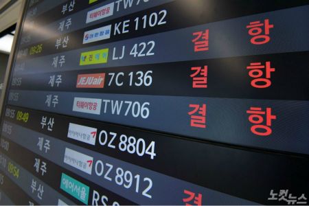 이 여파로 제주공항에는 윈드시어, 즉 돌풍 특보가 내려지면서 이날 청주공항에서 제주를 오가는 아시아나항공 OZ8231편 등 42개 항공편이 모두 취소됐다.
