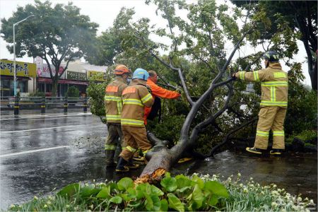"바람이 팍팍 부는데 너무 겁났다. 가로수는 쓰러진 다음에 봤는데 하마터면 큰일날 뻔했다. 소방 당국이 빨리빨리 대처해줘서 감사하다."강력한 태풍 '바비'의 직접 영향권에 든 26일 오후 제주시 일도2동 한 식당 주인 허봉유(53)씨는 놀란 가슴을 쓸어내렸다. 초속 40m의 강풍에 가로수가 쓰러지면서 식당을 덮칠 뻔했기 때문이다.