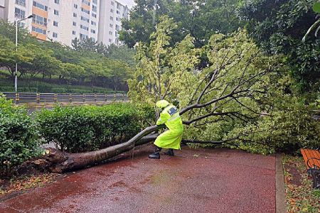 다행히 가로수가 인근 도로를 향해 꺾이면서 큰 피해를 막을 수 있었다. 다만 소방 당국이 쓰러진 가로수를 안전 조치하는 동안 도로 일부 구간은 차량 통제가 이뤄졌다.