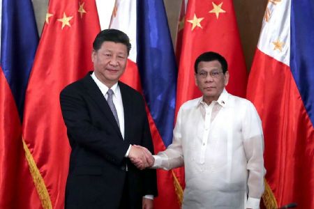 필리핀을 방문 중인 시진핑 중국 국가주석(왼쪽)과 두테르테 대통령(오른쪽). (사진=연합뉴스/자료사진)