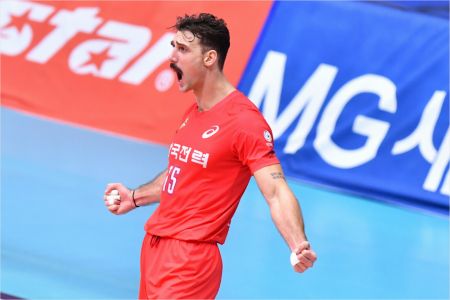 대회 초반만 하더라도 러셀은 별다른 활약이 없었다. 지난 23일 국군체육부대(상무)와 조별리그 1차전은 상대 목적타 서브에 무너지며 1세트 초반 교체돼 0득점 수모를 겪었다.