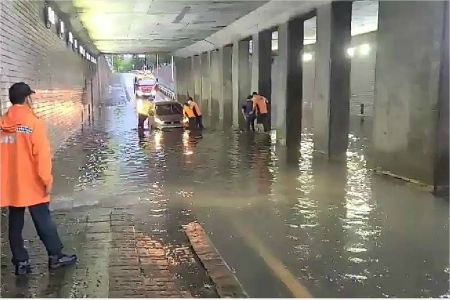 30일 경남 창원시 의창구 차룡동 팔용지하차도에서 국지성 호우로 승용차 1대가 물에 잠겼다. 다행히 운전자는 차가 침수되자, 곧바로 대피했다.