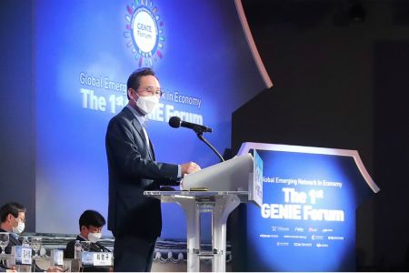 정세균 국무총리는 영상으로 보내온 축사를 통해 "지니포럼이 지역 혁신성장을 위한 글로벌 경제 네트워크로서 큰 역할을 하길 기대한다"며 "정부는 전북 혁신도시를 자산운용 금융도시로 육성하는 등 다각도로 지원하겠다"고 말했다.