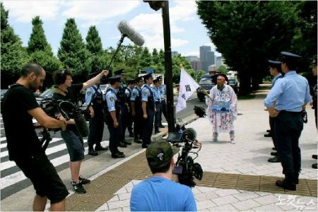 "비행기에서 내려 숙소 앞에 도착하면 사복을 입은 일본 경찰이 마중을 나왔어요. 관리 대상이었죠. 집회 도중에도 일본 경찰이 바짝 붙어서 방해하는 경우가 많은데 우리 영사에 전화해 협조를 받으면 좀 괜찮아지더라고요."