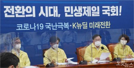 3일 오전 국회에서 열린 더불어민주당 정책조정회의장에서 김태년 원내대표가 모두발언을 하고 있다. (사진=윤창원 기자/자료사진)