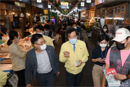 이낙연 대표는 코로나19 재확산으로 지역경제 침체가 심화할 것으로 우려됨에 따라 시장을 찾아 현장의 의견을 청취했다. (사진=윤창원 기자/자료사진)