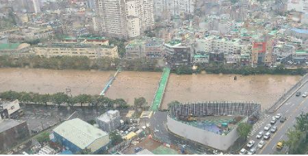 이에 따라 경찰과 구청 등은 하천 접근을 막고 재난문자를 발송하는 등 대응에 나서고 있다.