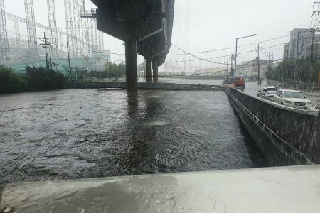 온천천도 장전동역 2.57m(위험 수위 2.57m), 중앙여고 앞은 4.27m로 위험 수위인 3.37m를 넘어섰다.