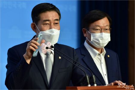 국민의힘 신원식 의원이 지난 2일 오전 서울 여의도 국회 소통관에서 기자회견을 열고 추미애 법무부 장관의 아들 서모씨 휴가와 관련해 관련자의 통화 녹취록을 공개하고 있다. (사진=윤창원 기자)