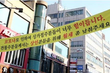 코로나19로 인한 임대료 인하 요청 현수막. (사진=연합뉴스/자료사진)