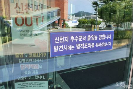 신천지는 지난 달 24일 전북 군산시 주요 교회들 앞으로 ‘신천지(추수꾼) 출입금지’ 문구를 제거해달라는 내용증명을 발송한 것으로 확인됐다.