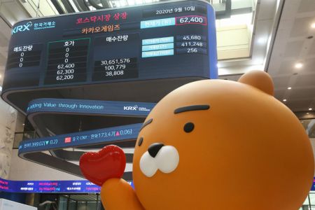 SK바이오팜에 이어 10일 코스닥 시장에 상장한 카카오게임즈가 장 시작 직후 공모가의 2.6배까지 급등하는 '따상'(시초가가 공모가의 2배로 결정된 후 첫날 상한가)을 기록했다.