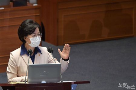 추미애 법무부 장관이 14일 오후 서울 여의도 국회에서 열린 본회의에서 대정부 질의에 답하고 있다. (사진=박종민 기자)