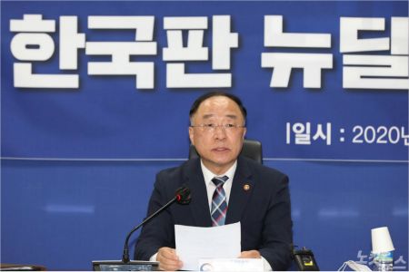 더불어민주당 조정식 의원은 '금융권의 뉴딜 펀드 참여를 정부가 동원한 것이냐'고 물었고, 홍 부총리는 "정부가 강요할 수 없으며 민간 금융회사가 스스로 일부 발표했고 그렇지 않은 곳도 수익성을 보고 많은 참여가 있을 것"이라고 답했다.
