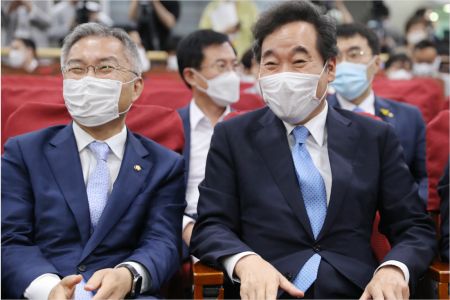 더불어민주당 이낙연 의원(오른쪽)과 열린민주당 최강욱 대표(사진=연합뉴스)