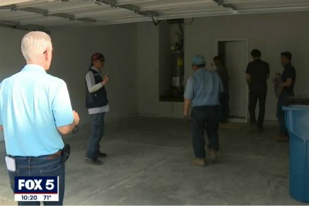 지난 8월 19일 애틀랜타 현지방송의 보도 장면. 탐사보도팀이 한국인 노동자들의 숙소를 급습하는 장면이다.(사진=Fox5 Atlanta 캡처)