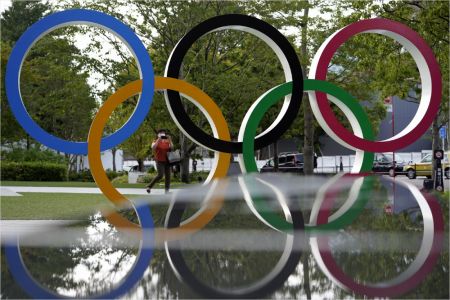 도쿄올림픽 주경기장의 오륜 조형물(사진=연합뉴스)