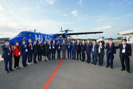 경상남도는 25일 사천공항에서 소형 항공운송 사업자인 '하이에어'의 사천-김포 노선 첫 운항을 알리는 취항식을 열었다.